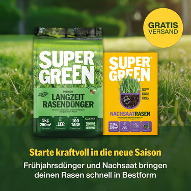 Du möchtest deinen Rasen optimal pflegen und dabei clever sparen? SUPERGREEN bietet dir durchdacht kombinierte Sets und Bundles, die exakt auf saisonale Anforderungen, spezifische Anwendungsfälle und individuelle Bedürfnisse abgestimmt sind. Ob Frühjahrsstart, Sommerpflege oder Herbstvorbereitung - unsere Pakete enthalten alles, was dein Rasen braucht, und bieten dir dabei einen attraktiven Preisvorteil.