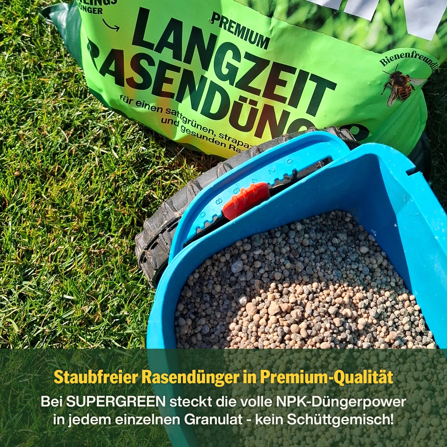 Höchst ergiebiger Langzeitdünger für bis zu 100 Tage nachhaltige Power für einen sattgrünen und dauerhaft gesunden Rasen